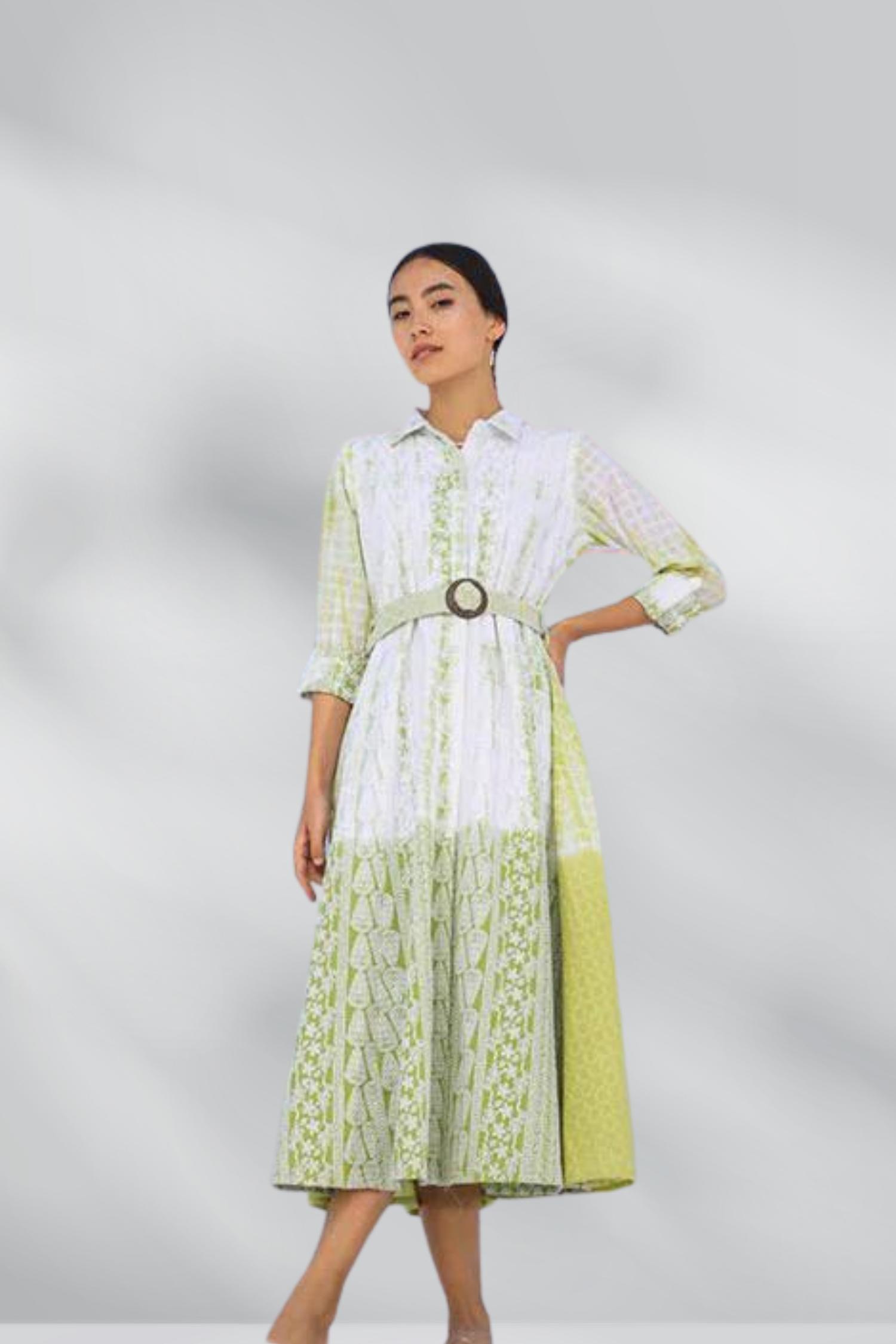 Freyaa Teal Tunic Dress With Floral Embroidery And Chic Collar